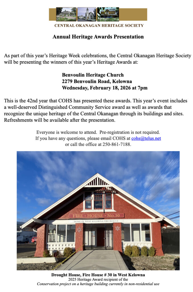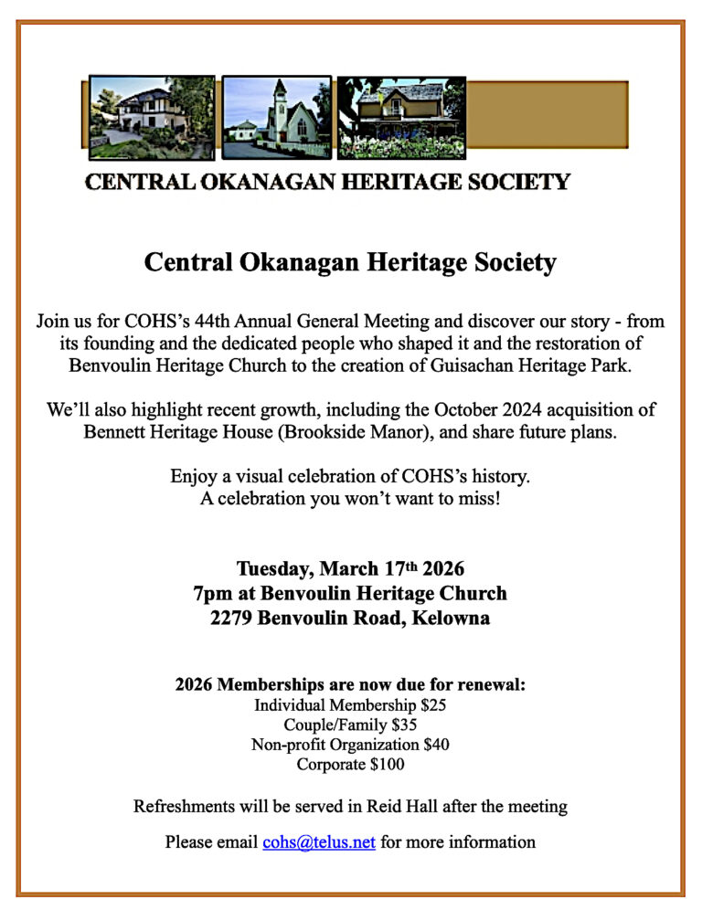 Welcome to the Central Okanagan Heritage Society!